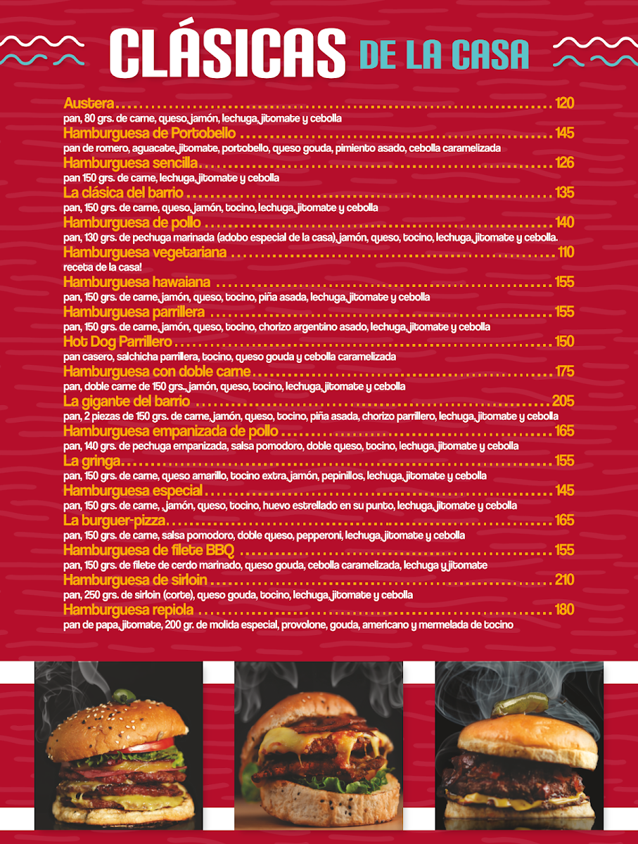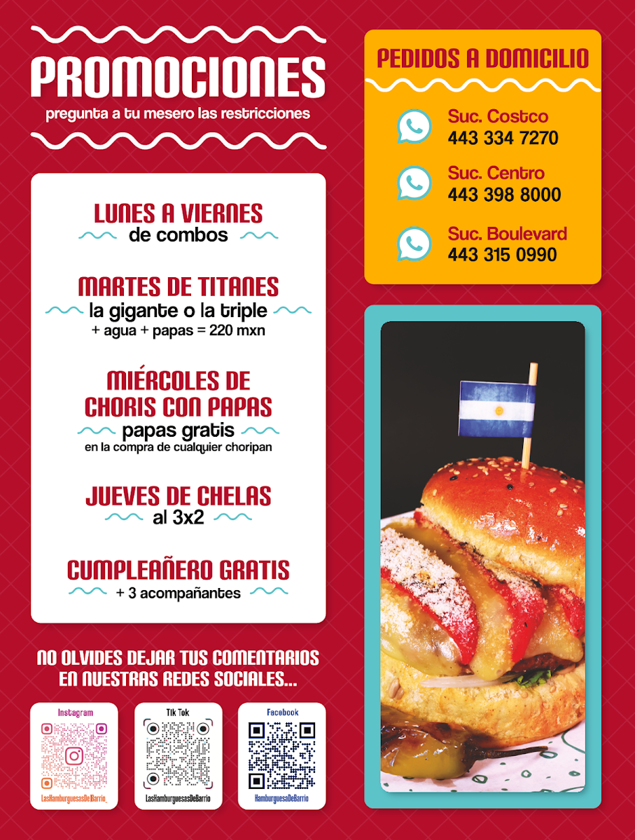 At Las Hamburguesas Del Barrio Menu, you're in for a real treat with each bite. This vibrant spot in Morelia serves up a mouthwatering selection of gourmet burgers that take the classic comfort food to the next level. The menu is packed with unique combinations, blending fresh, high-quality ingredients with bold flavors. Whether you're in the mood for something savory, spicy, or a little bit of both, there's something to satisfy every craving. From their juicy patties to the crispy toppings, every burger is made with care and served hot off the grill. Alongside the burgers, you’ll find delicious sides and drinks to complement your meal, creating a complete dining experience that's perfect for both casual outings and special moments.